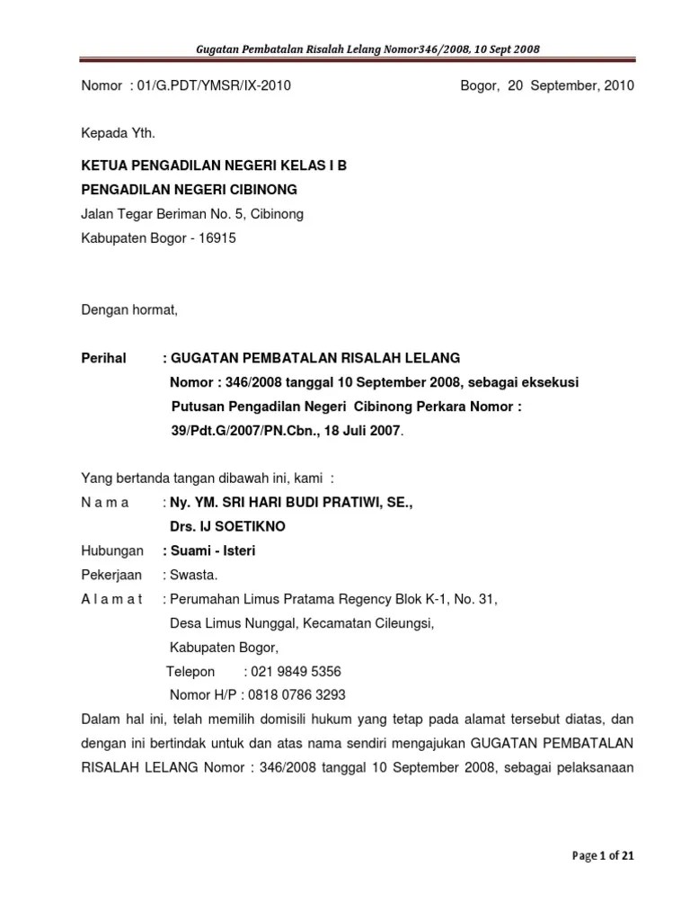 Contoh Format Surat Permohonan Pembatalan Perjanjian Ke Pengadilan Pdf / 2 : Contoh surat gugatan contoh permohonan berdasarkan pasal 53 uu ap contoh surat jawaban tergugat · contoh surat kuasa .